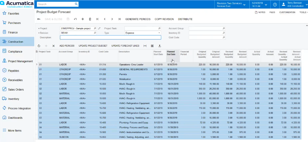 Acumatica Construction Edition cung cấp đầy đủ công cụ.